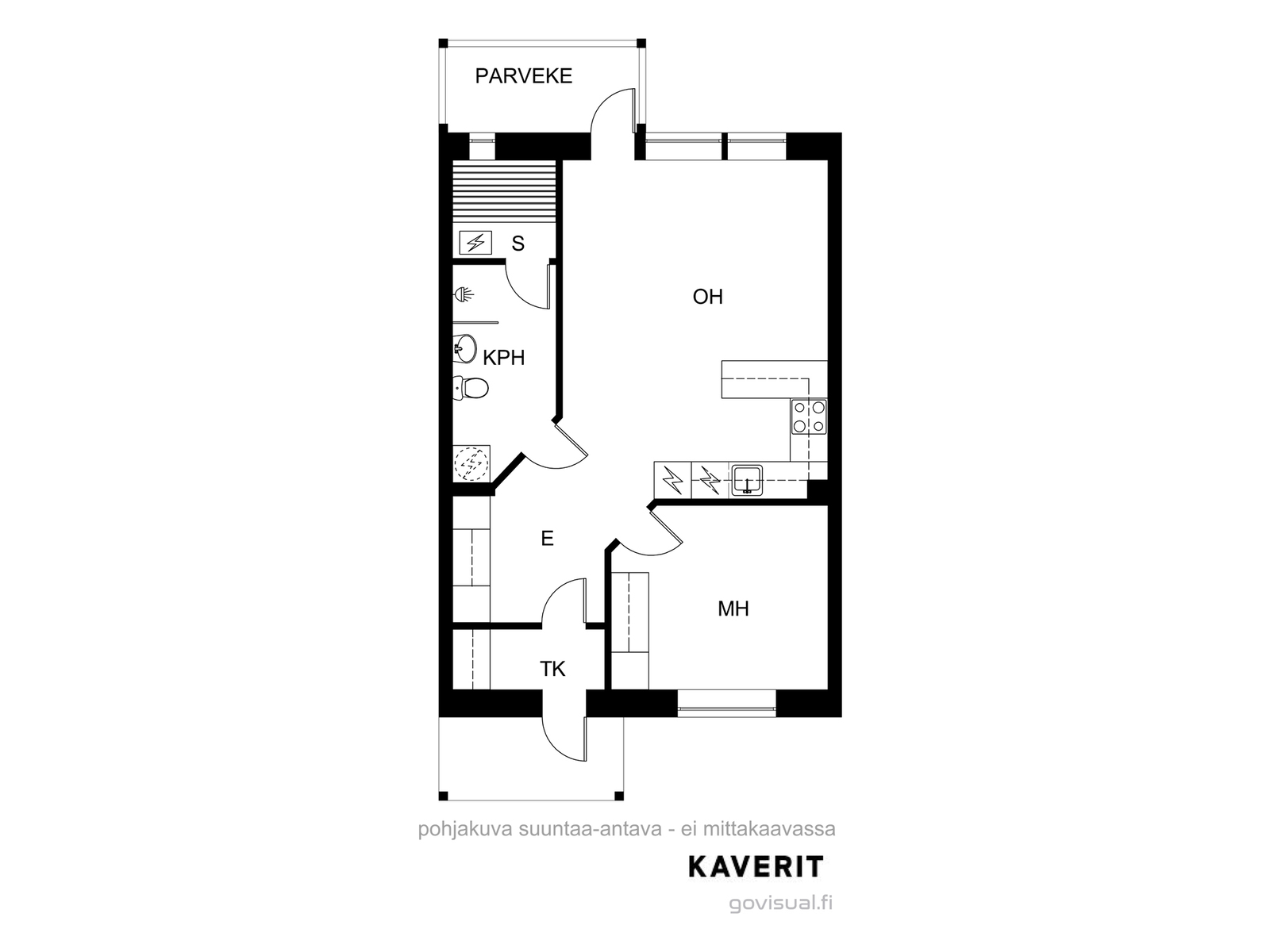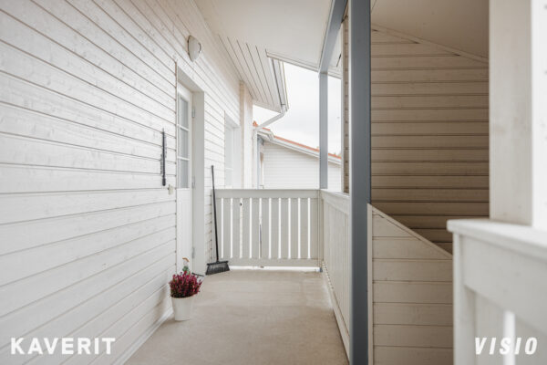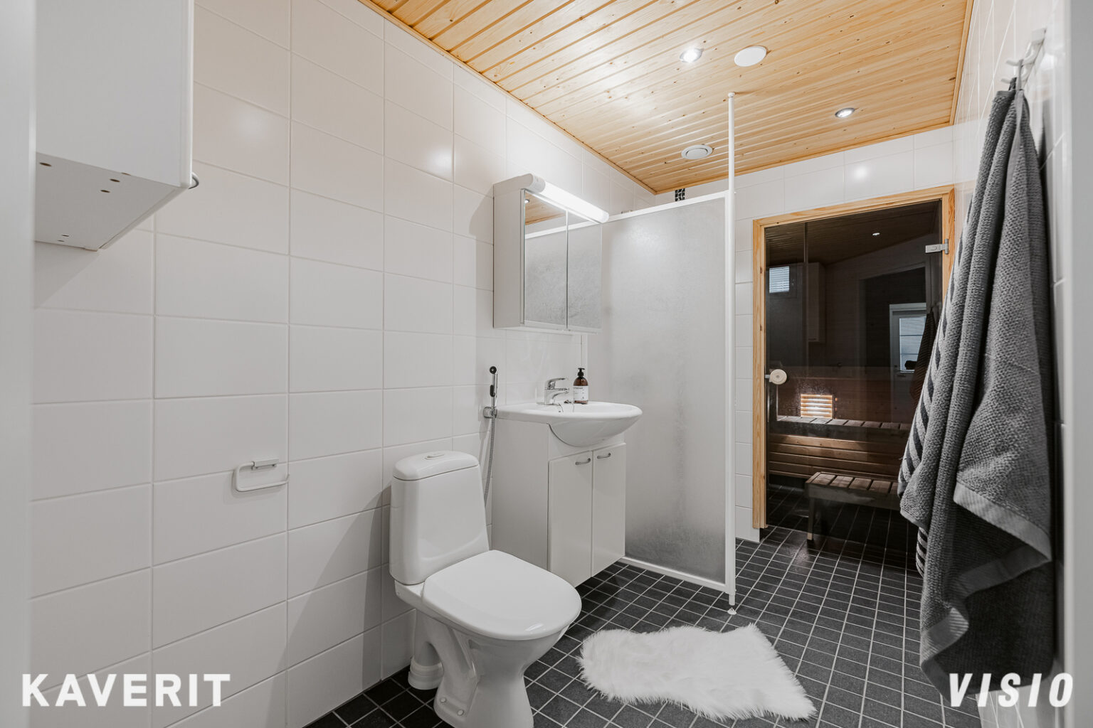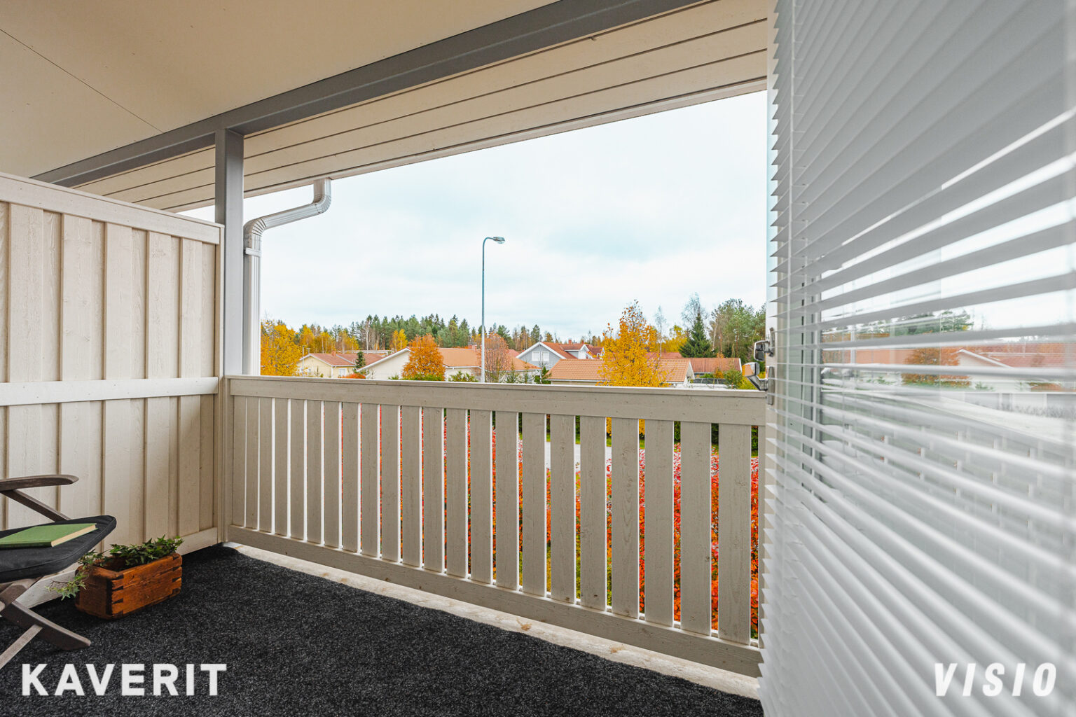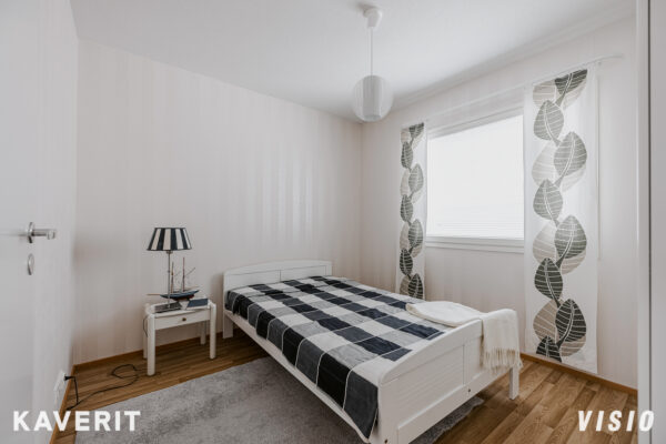 Asunnon vaaleat pintamateriaalit ja toimiva pohjaratkaisu luovat valoisan ja avaran kokonaisuuden. Toimivaksi suunnitellussa, modernin ilmeen omaavassa keittiössä on paljon kaappi- ja laskutilaa. Keittiö ja olohuone muodostavat yhtenäisen, viihtyisän oleskelutilan, josta on kulku etelään suuntautuvalle parvekkeelle. Ajattoman tyylikkäässä kylpyhuoneessa wc, paikka pesutornille sekä ikkunallinen sauna. Asunnolle kuuluu autokatospaikka sekä autokatosrakennuksen yhteydessä sijaitseva