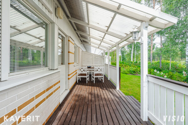Keittiössä hyvin kaappi sekä laskutilaa. Keittiöstä kulku viihtyisälle osittain katetulle suojaisalle terassille. Olohuoneessa kaunis vuolukivinen varaava takka. Siistikuntoinen kylpyhuone jossa suihkukaappi. Saunassa ikkuna. Erillinen wc. Huoneistolle kuuluu autokatospaikka ja kaksi ulkovarastoa. Ilmalämpöpumppu asennettu 2017. Lähellä kauppa, koulu ja päiväkoti sekä monipuoliset lenkkeily- ja ulkoilumahdollisuudet. Tervetuloa tutustumaan tähän kauniiseen kotiin!