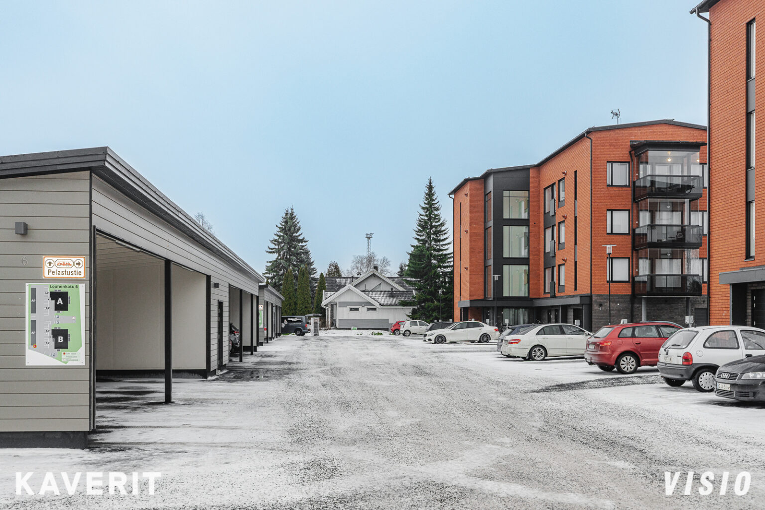 Asunnon yhteydessä myydään autokatos omilla osakkeilla hintaan 5000,-€.