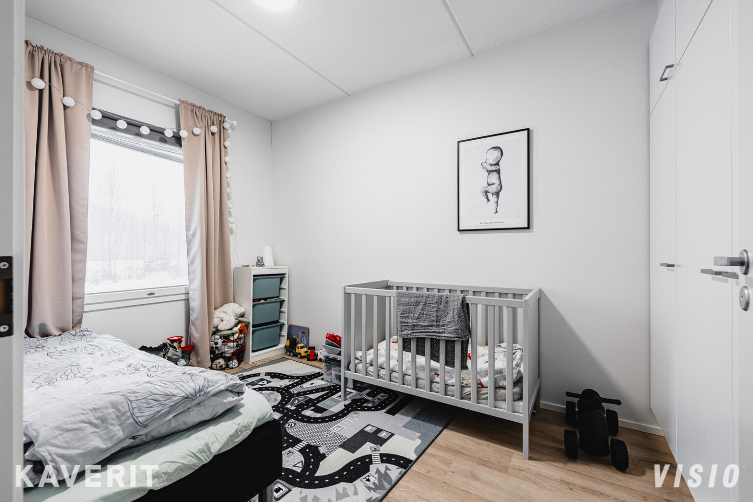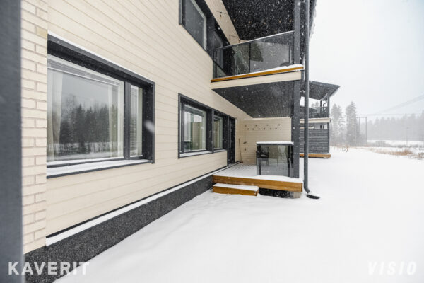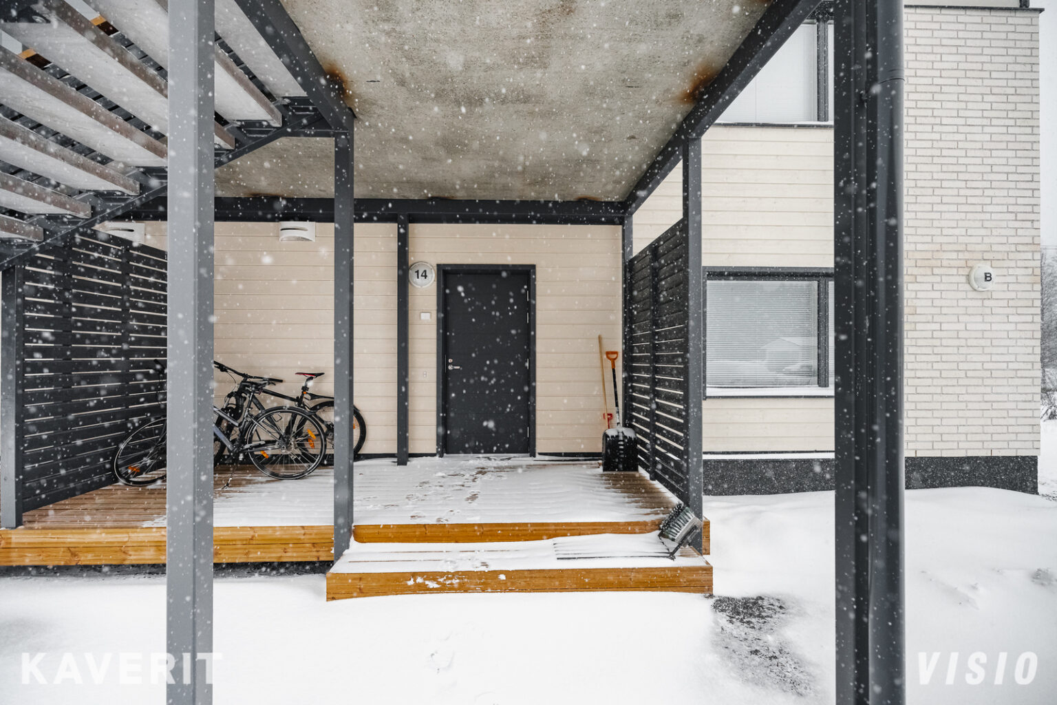 Suositulta Kärjen asuinalueelta, vuonna 2020 valmistunut alemman kerroksen päätykolmio. Asunto on osa yhteensä 19 asuinhuoneistoa käsittävää taloyhtiötä.